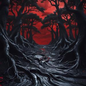 The Black Demesne, also known as the Forest Demesne, is physically located on the southwestern side of the rock wall surrounding Diadem. Entry is through a golden gate featuring a black magic wall that appears like an ever-falling veil of paint or ink. Inside, the demesne initially presents a nightmarish scene of a half-dead forest with trees that are grayscale and barren of most leaves, all under a blood red full moon in a pitch black sky. The ruler of this domain is Cassius Summus, a black fox man who maintains this curiously dangerous and beautiful forest.
