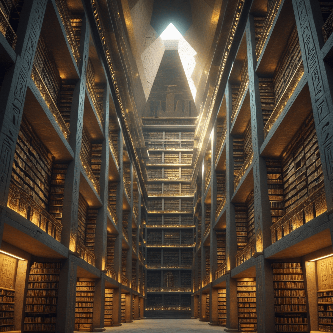 The Orange Demesne is a desert environment that contains three large, limestone pyramid structures. Access to this demesne is through an orange and gold gate that resembles a slowly filling hourglass. Inside the main pyramid is a massive library, described as a “magical library of infinite knowledge and wisdom,” which is run by the Demesne Master, Conroy Kaksteist, a tiger-human hybrid. One of the pyramids also contain a laboratory.